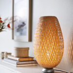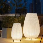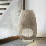 The lamp casts a warm, ambient glow that’s perfect for living rooms, bedrooms, or cozy reading corners. Its tall, sculptural frame and organic curves create a serene atmosphere, enhancing the aesthetic of any room it occupies.